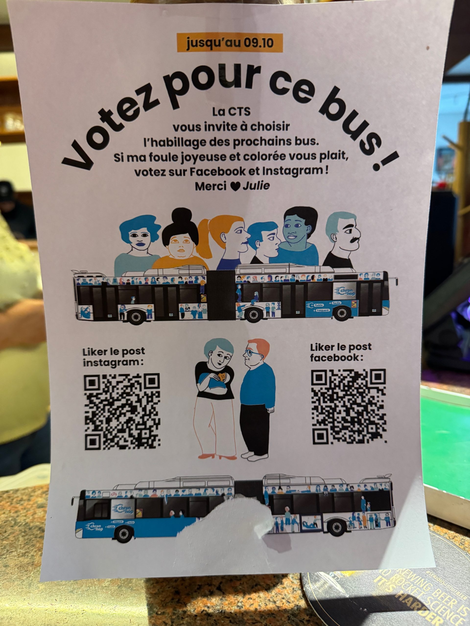 La CTS organise jusqu’au 9 octobre 2024 midi un vote sur les réseaux sociaux pour choisir l’habillage des prochains bus Chron’hop. Et permis les candidats la Robertsauvienne Julie Luzoir.