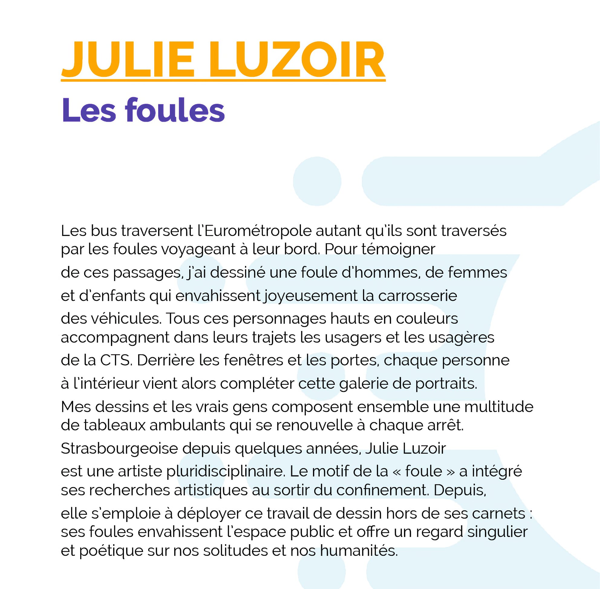 La CTS (Compagnie des Transports Strasbourgeois) a lancé une consultation avec 3 propositions pour habiller ses bus Chron’hop. Et parmi les propositions, celle de la Robertsauvienne Julie Luzoir.