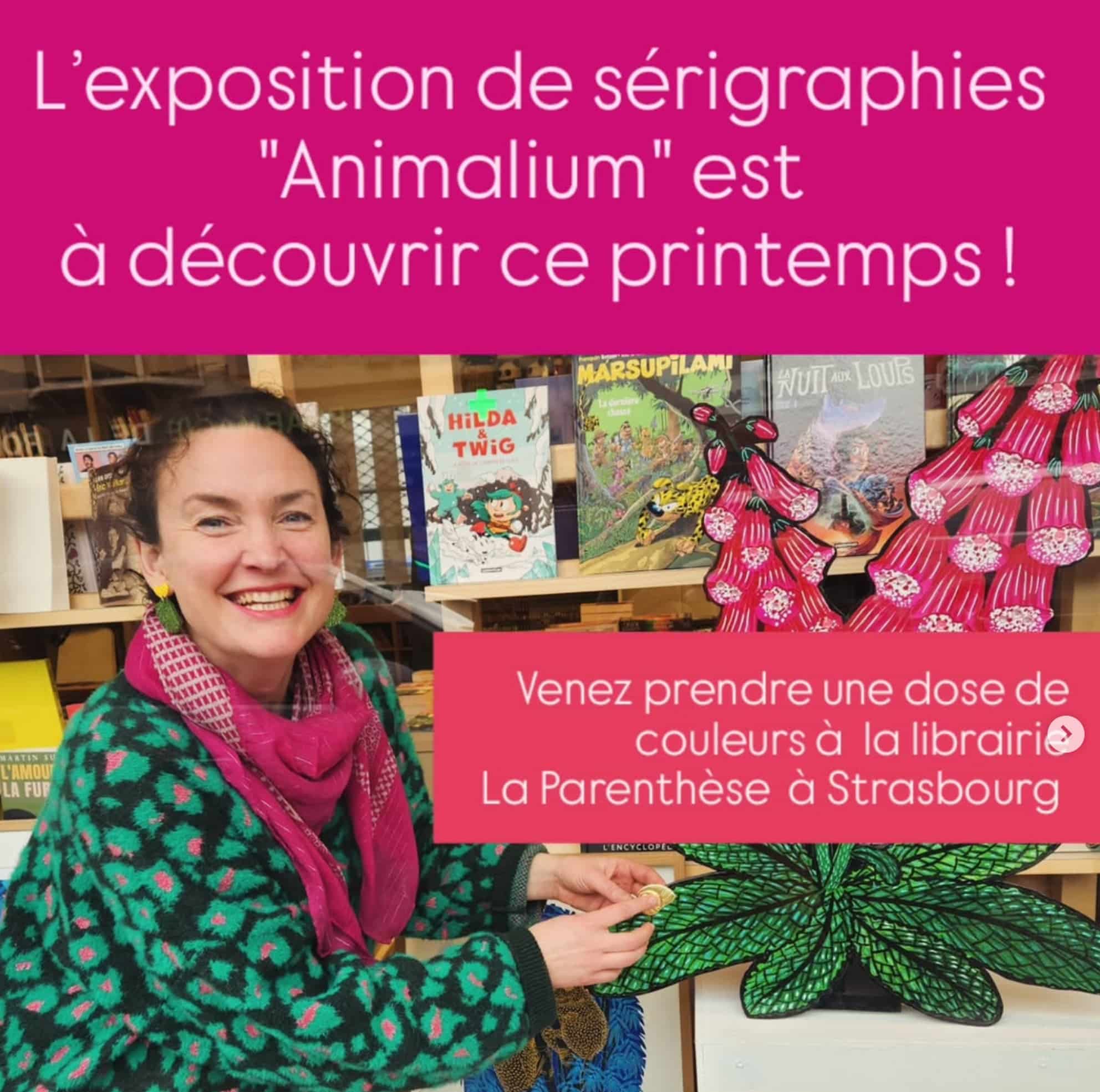 L’artiste Céline Clement expose une série de sérigraphies naturalistes dans la vitrine de la librairie La Parenthèse à la Robertsau.