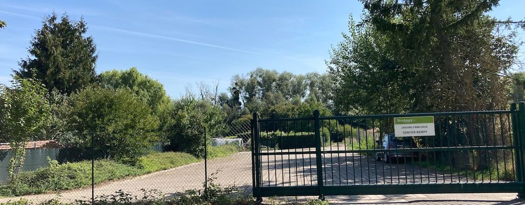 Rue Kempf en allant vers le stade de Pourtales, vous tournez à droite dans le sentier Kempf et vous arrivez à un petit secteur de jardins familiaux. Le chemin est discret et peu connu, mais totalement bucolique. On arrive alors à un petit parking pour que les usagers des jardins puissent y garer leur véhicule. Cette grille est maintenant fermée depuis le 23 juillet 2020.