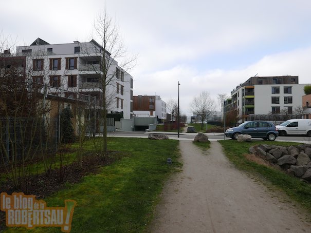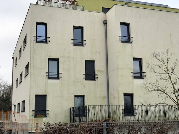 Rue de l’Aubépine, nous sommes au bord de l’Ill pourtant les façades sont encore en bon état or le dernier ravalement date de 2006. Par contre il y a de la mousse sur les balcons.