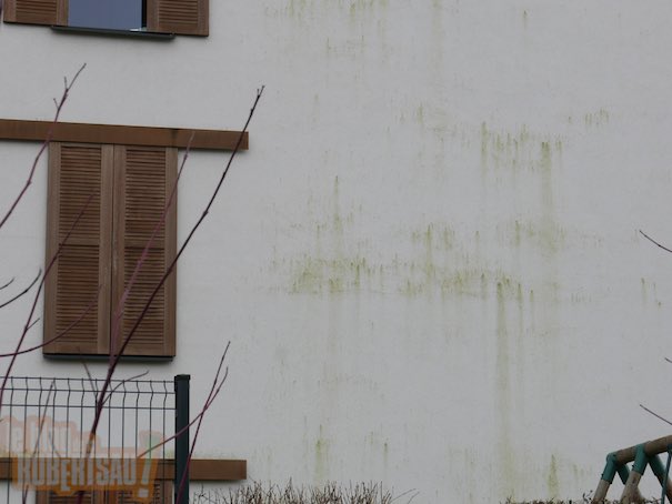 Sentier de l’aubépine, immeuble de qualité, on a aussi repeint au bout de 10ans cause traces vertes. On a utilisé une peinture anti truc-much qui fonctionne très bien, on est 12 ans plus tard… Mais on est entouré d’eau et ça reviendra…